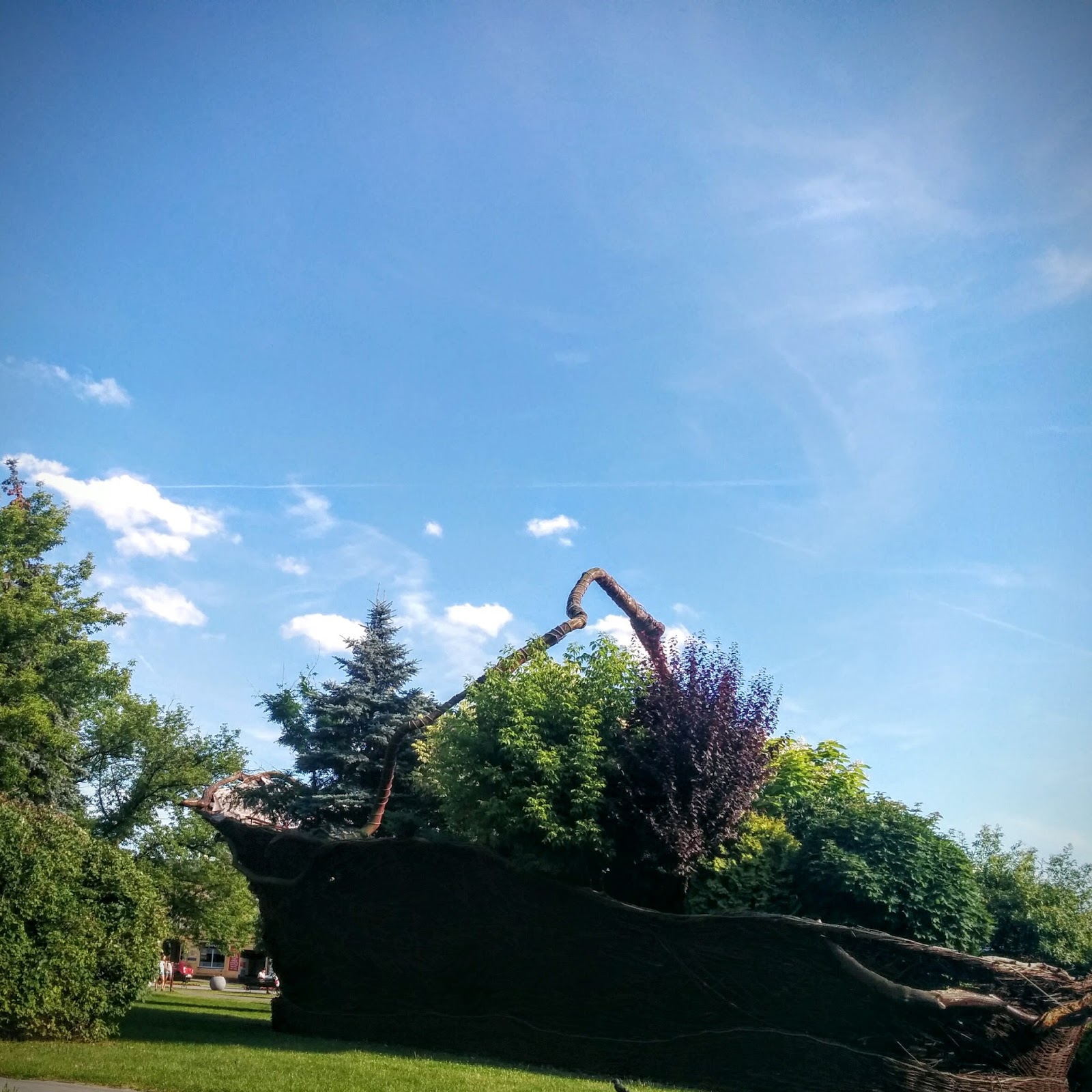 | På vägen stannade vi till i Nowy Tomysl där vi hittade en jättelik korg i en park som var stor som ett hus. |
