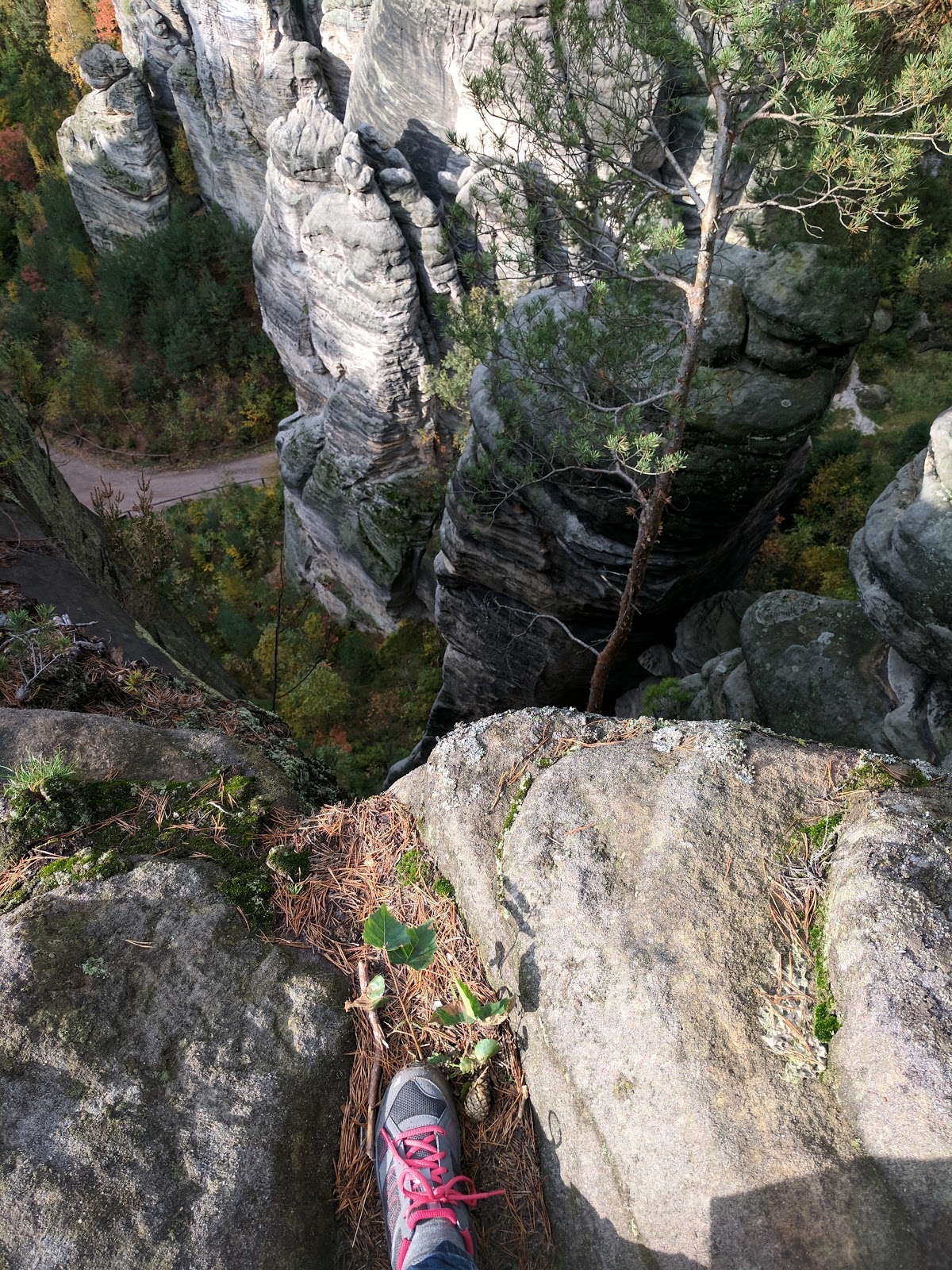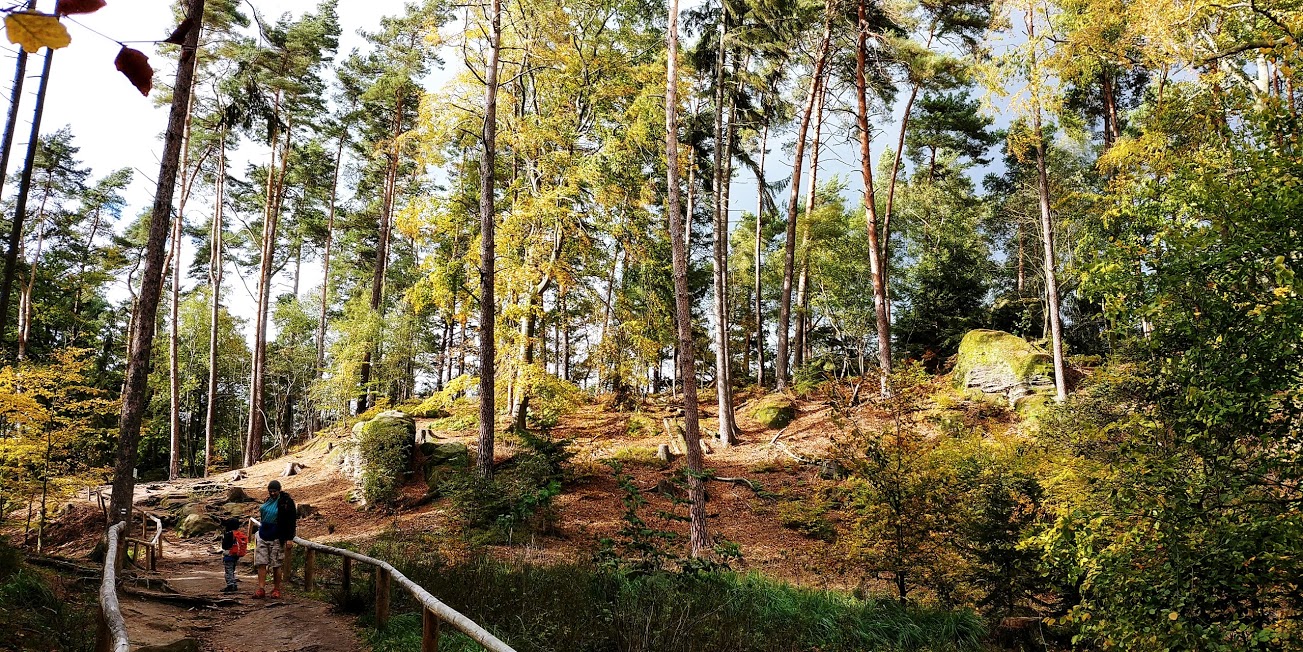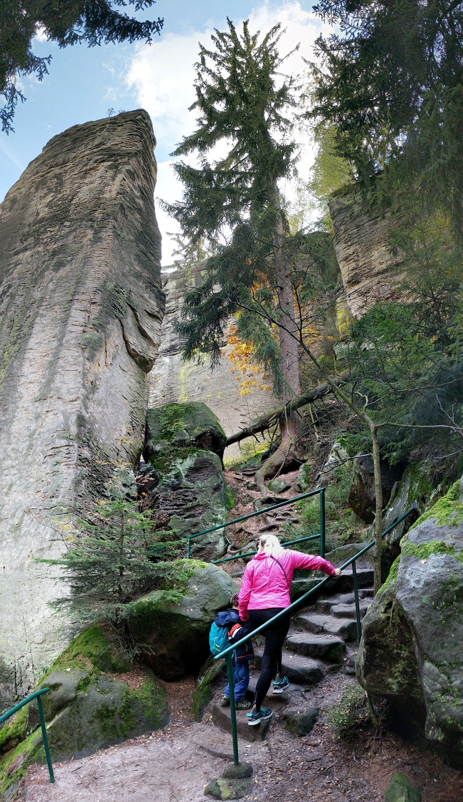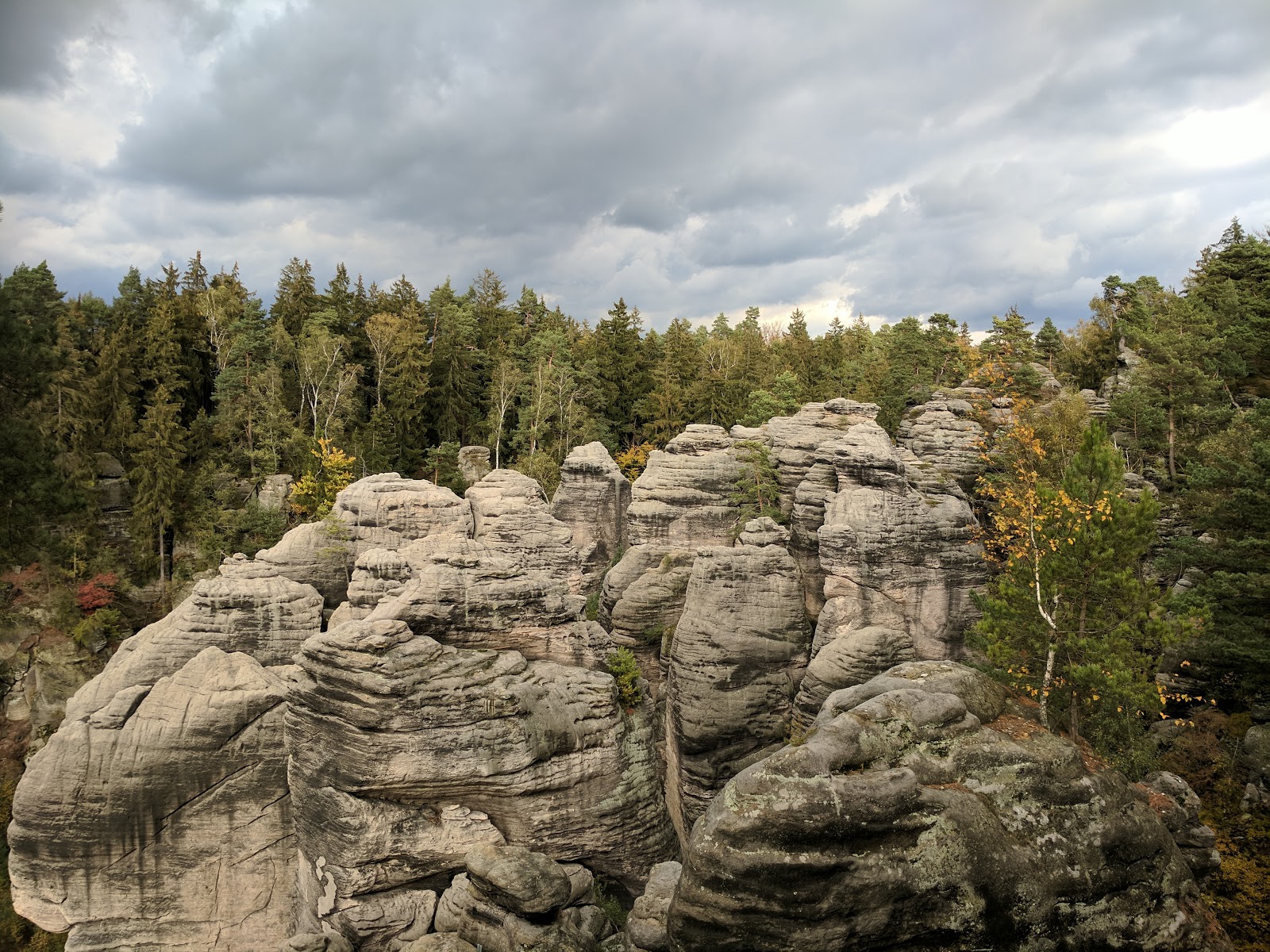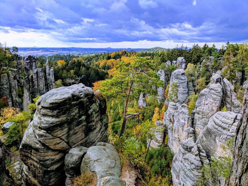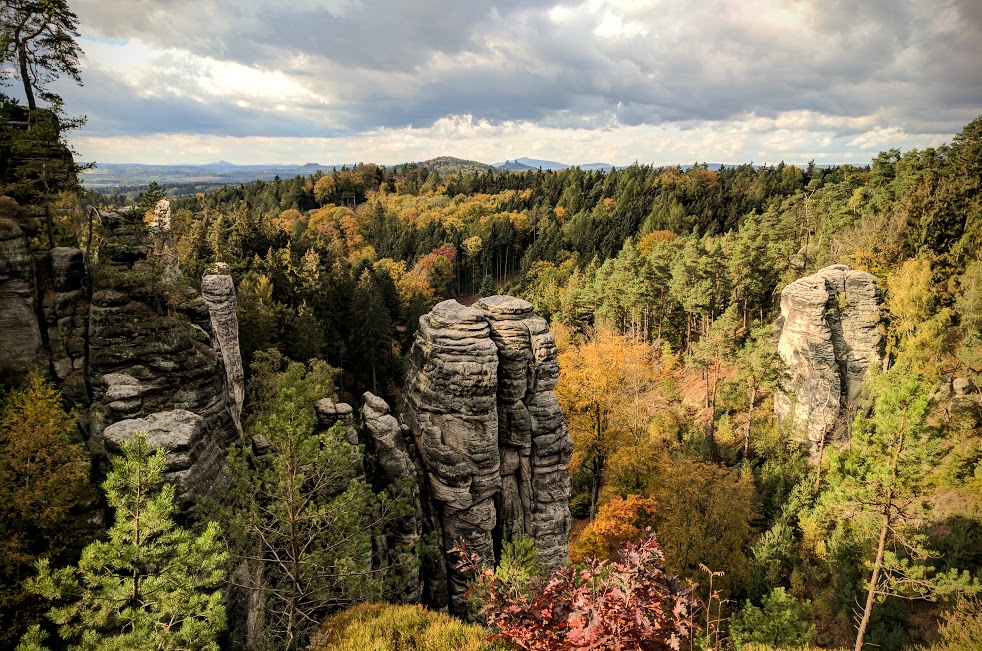 Bohemian Paradise är en region som ligger ungefär 90 minuters bilfärd från Prag. Det är ett område med vacker urskog och spännande stenspetsar som skjuter upp bland träden. De kallas “stone cities” och det finns flera stycken utspridda där. Stenspetsarna är av sandsten. Det är egentligen gammal havsbotten som har vittrat så att de får formen av stora “pinnar” av sten. De största är ungefär 90 meter höga. Området som vi besökte kallas “Prachovske Skaly”. Vi åkte till samma ställe förra året med en annan digital nomad familj från Sydafrika. Det var på sommaren och de hade med sig en drone och gjorde en cool video utav besöket.